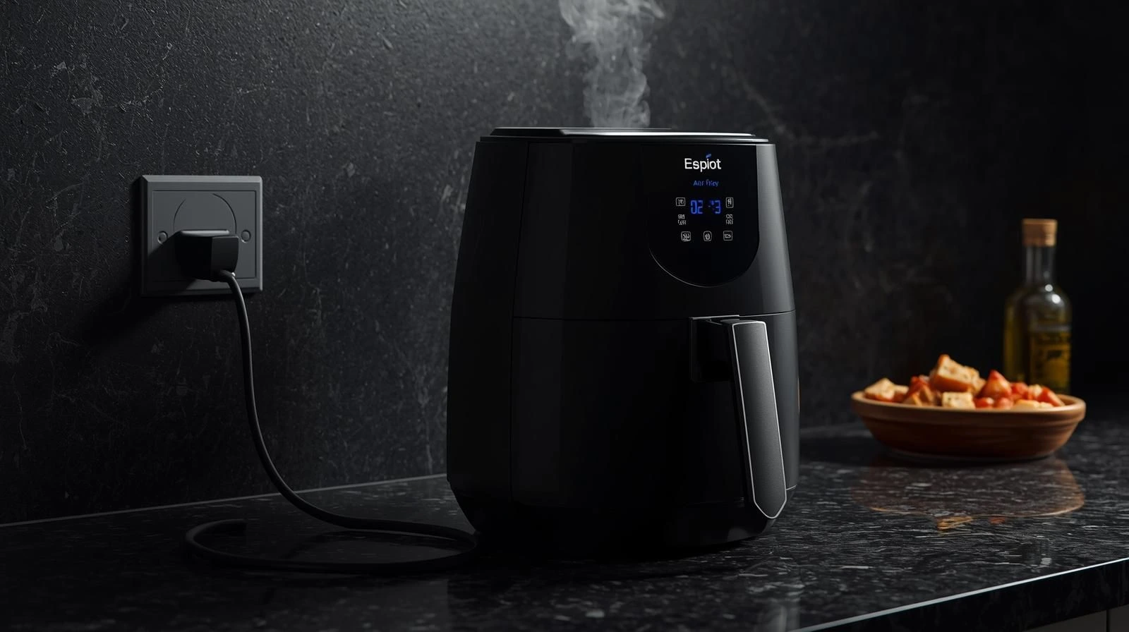 Persistent air fryer smoking from the base or the power cord is a critical safety hazard, not a cleaning issue. Always ensure your unit is connected to a dedicated 16A socket rather than a standard 6A plug to handle the current load. If the smoke has a distinct “burning plastic” smell, cease operations immediately to prevent a permanent short-circuit.